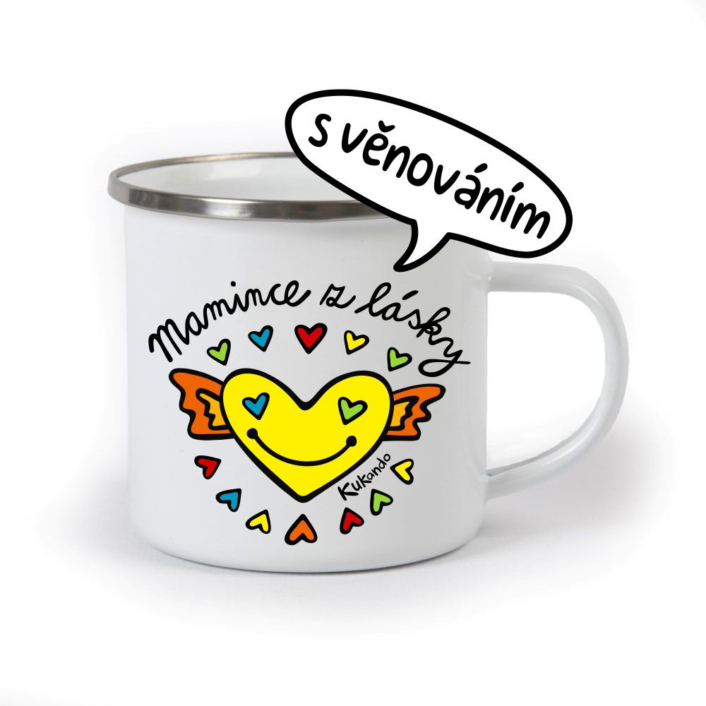 Veselý dárkový Kukando® plecháček pro maminku s věnováním na přání. Plecháček je lehký a téměř nerozbitný hrneček, ze kterého si můžete pochutnat na čaji, kafíčku nebo třeba horké čokoládě.