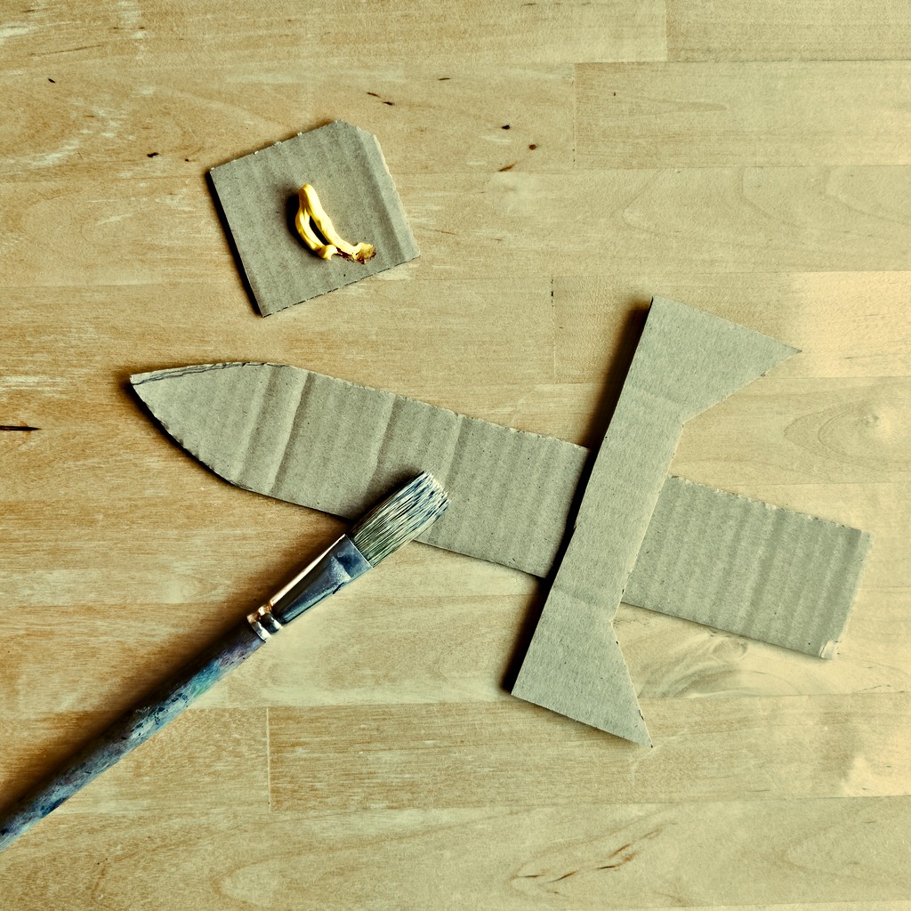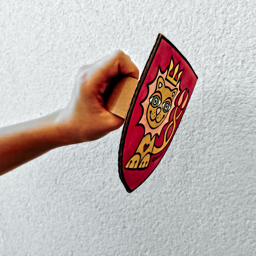 Na karton se dobře maluje temperami, vybarvěte meč na obou stranách. Tohle skvěle zvládnou i malinké děti.