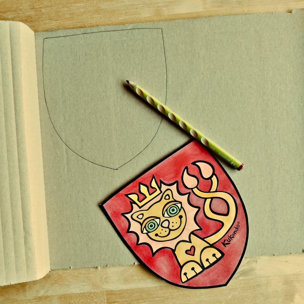 3. Obkreslete erb tužkou na karton a vystřihněte ho
