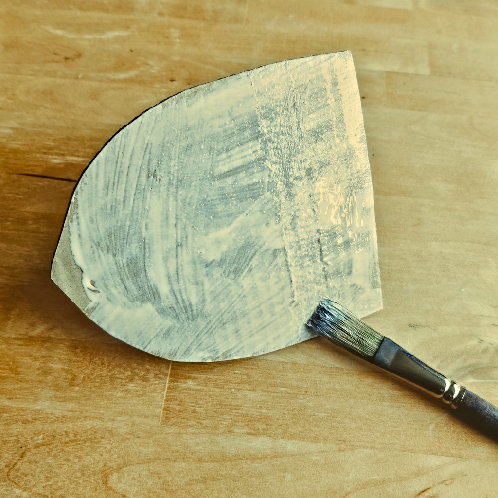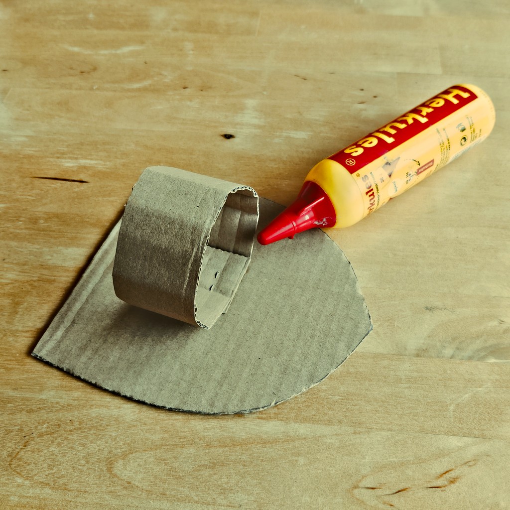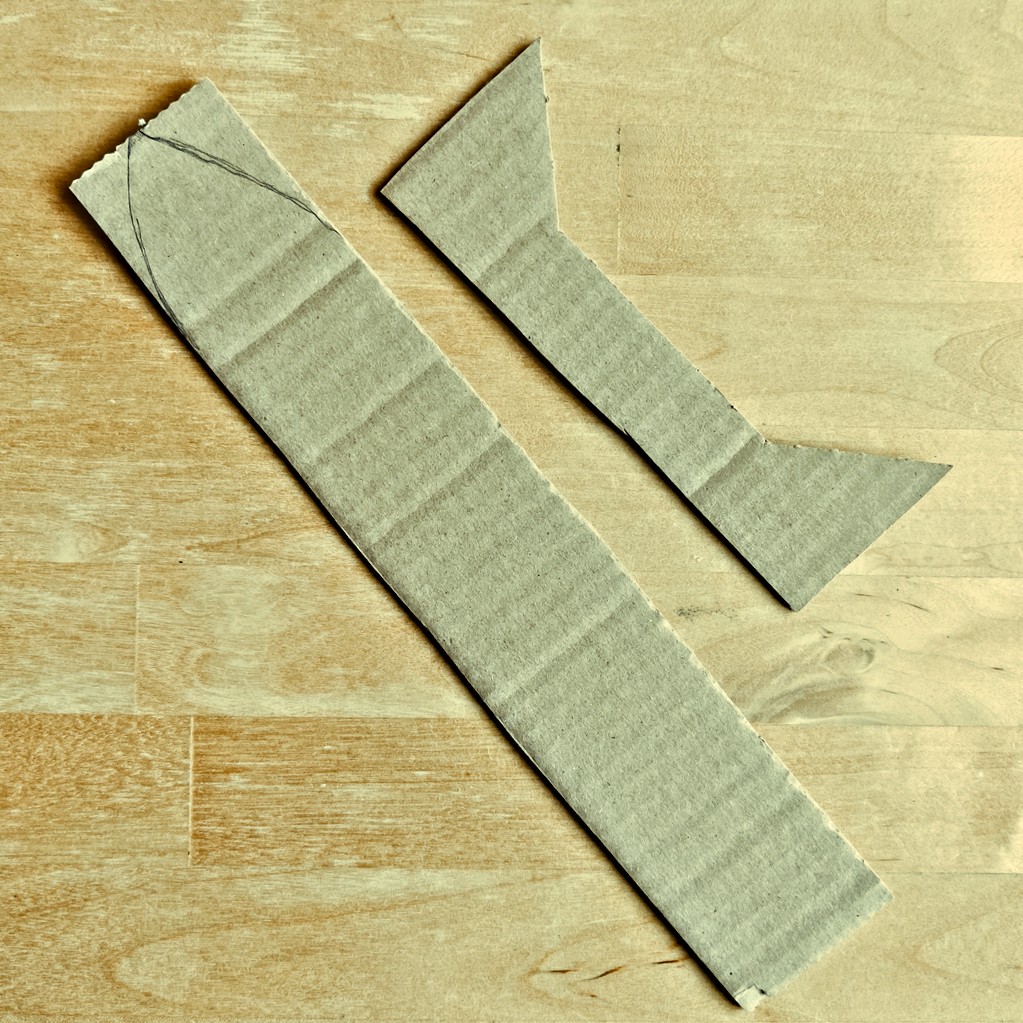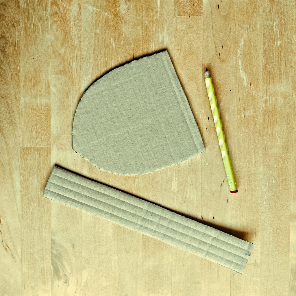 Z kartonu vystřihněte proužek cca 30 cm dlouhý a 4 cm široký na madlo štítu.