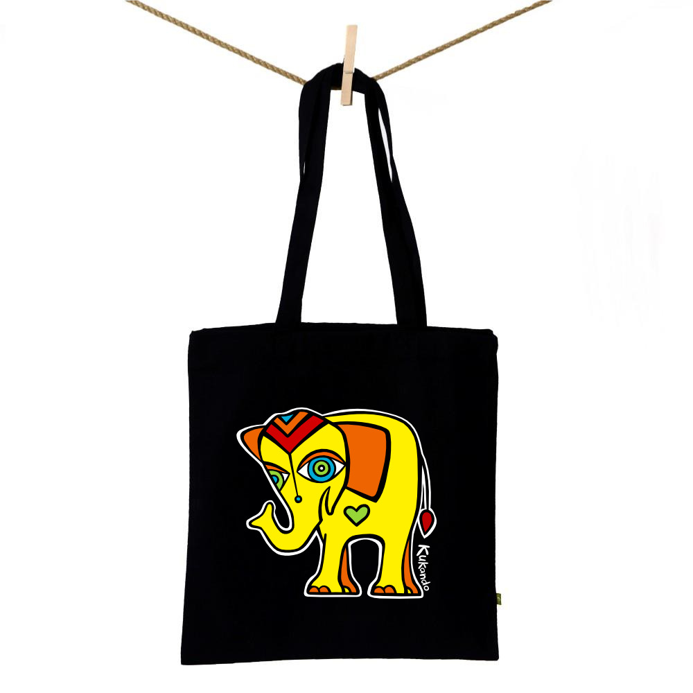 Poctivá bavlněná taška z vysokogramážové bio bavlny s originálním motivem Kukando® slona – autorského obrázku, který jinde nenajdete :-)