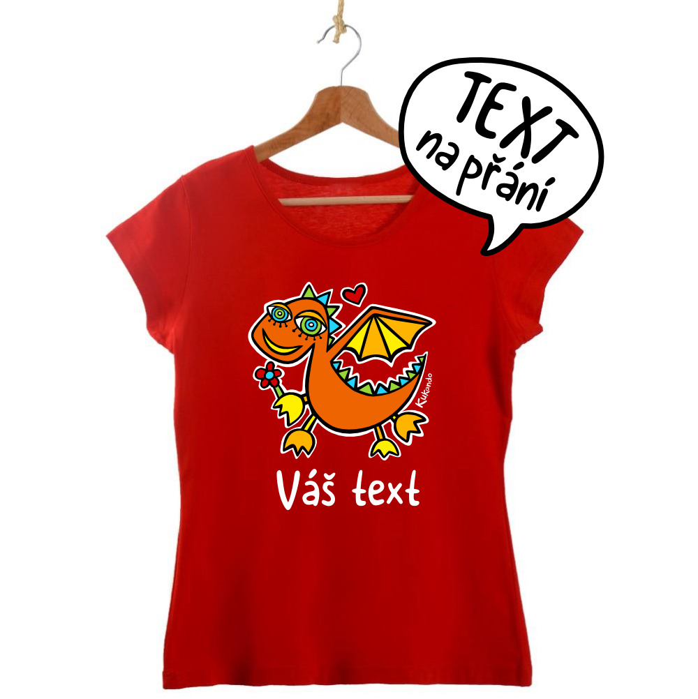 Veselé dámské tričko s vlastním nápisem a s motivem Kukando® dráčka – autorského obrázku, který jinde nenajdete :-)