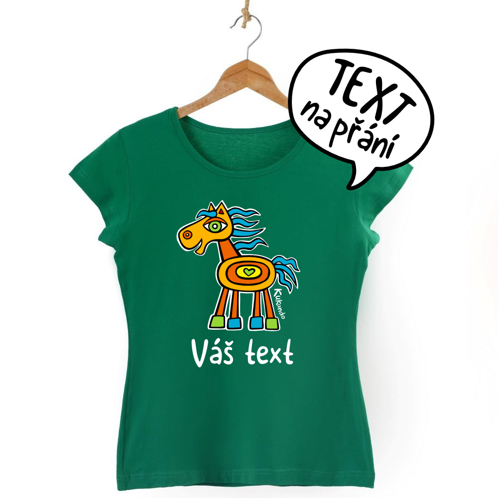 Dámské tričko s vlastním nápisem KONÍK zelené S