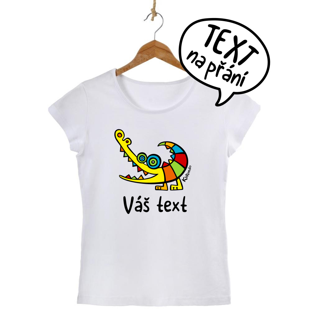 Veselé dámské tričko s vlastním nápisem a s motivem Kukando® krokodýla – autorského obrázku, který jinde nenajdete :-)