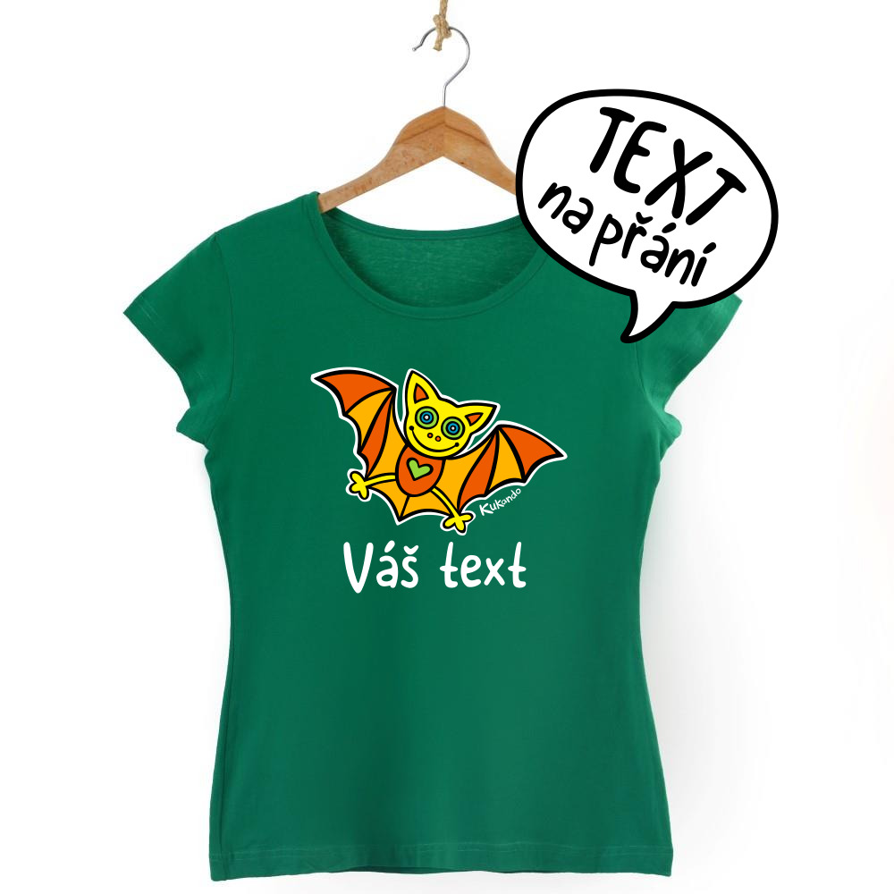 Veselé dámské tričko s vlastním nápisem a s motivem Kukando® netopýra – autorského obrázku, který jinde nenajdete :-)