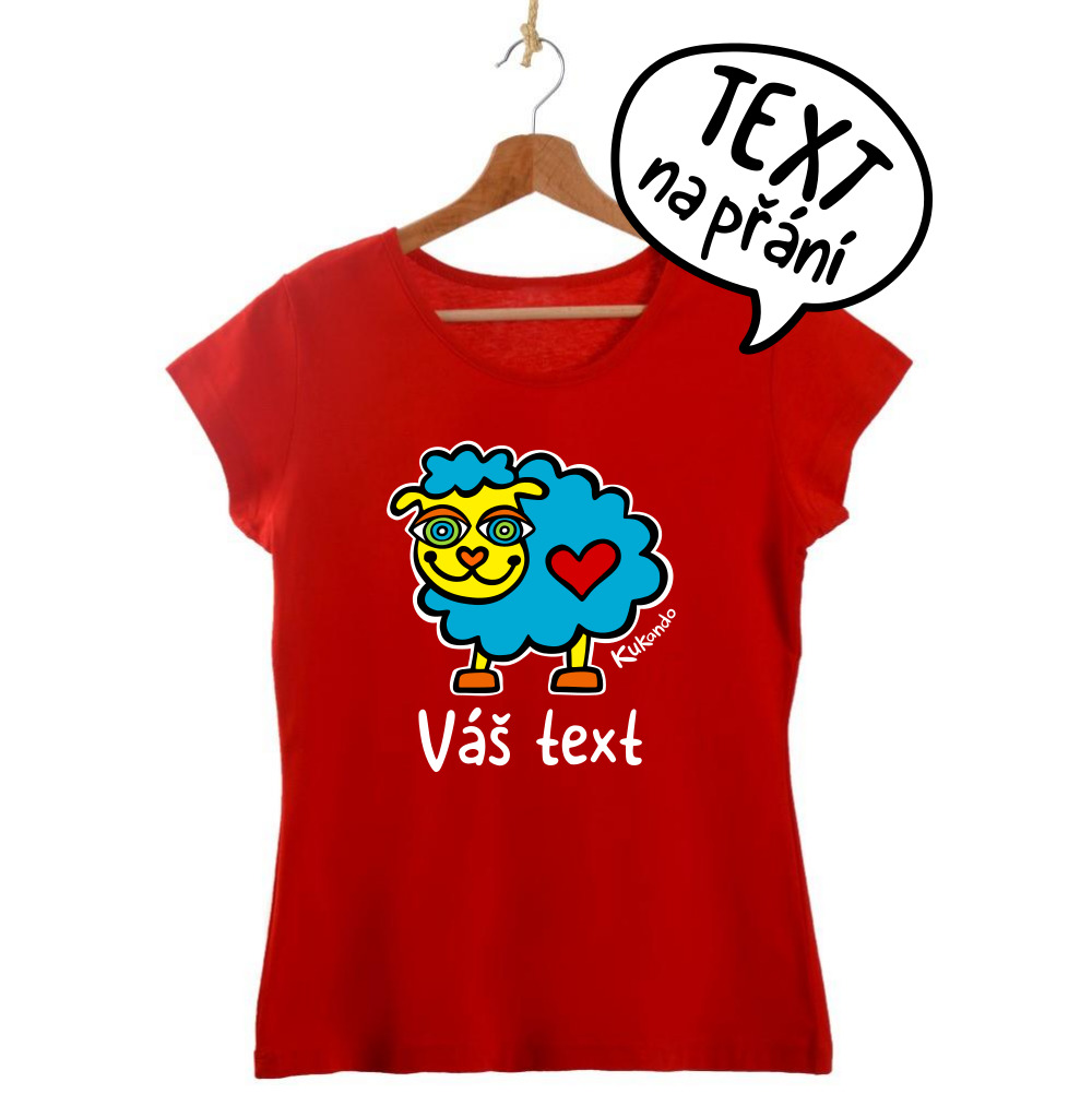 Veselé dámské tričko s vlastním nápisem a s motivem Kukando® ovečky – autorského obrázku, který jinde nenajdete :-)