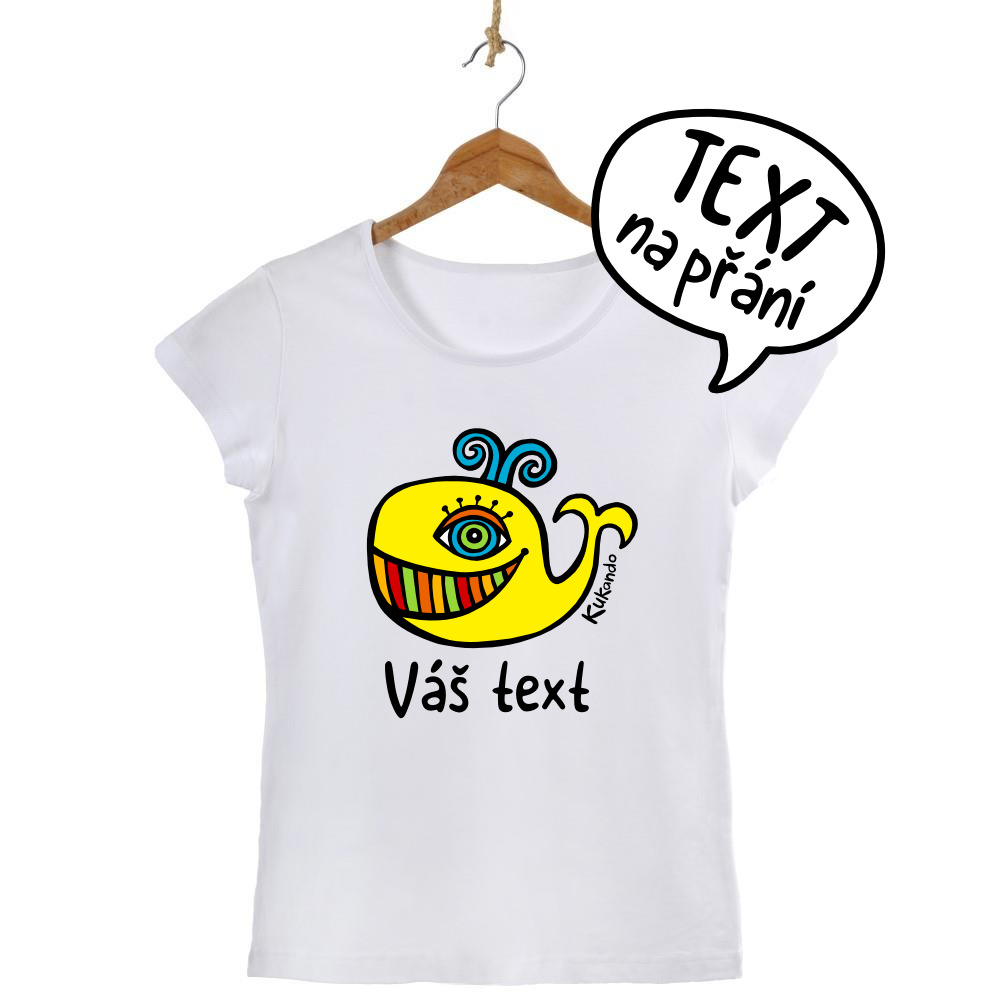 Veselé dámské tričko s vlastním nápisem a s motivem Kukando® velryby – autorského obrázku, který jinde nenajdete :-)