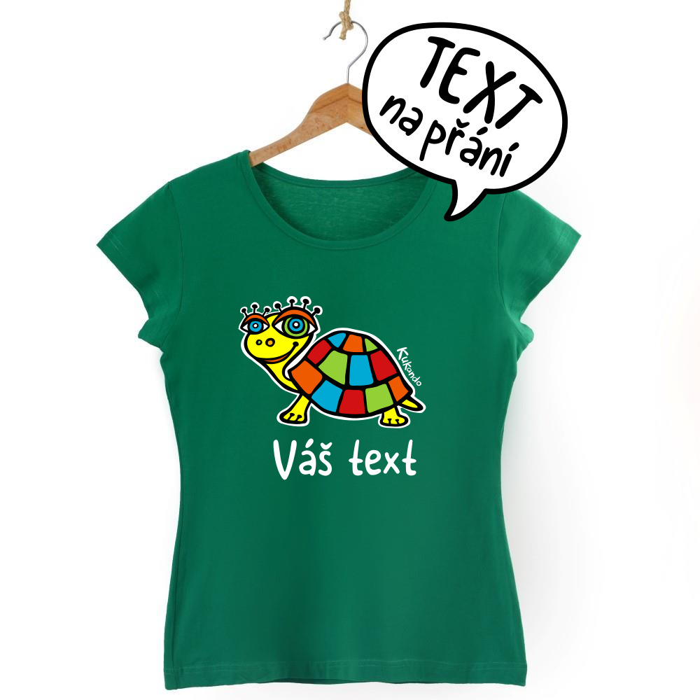Veselé dámské tričko s vlastním nápisem a s motivem Kukando® želvy – autorského obrázku, který jinde nenajdete :-)