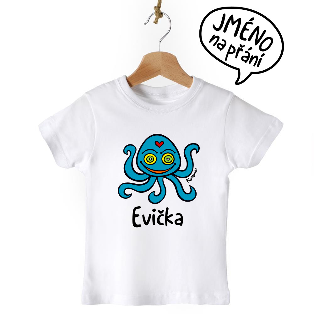 Veselé dětské tričko se jménem a s motivem Kukando® chobotnice – autorského obrázku, který jinde nenajdete :-)