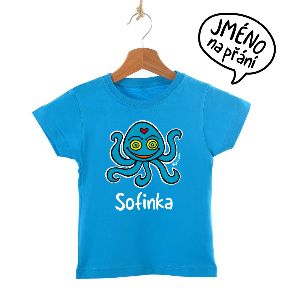 Veselé dětské tričko se jménem a s motivem Kukando® chobotnice – autorského obrázku, který jinde nenajdete :-)