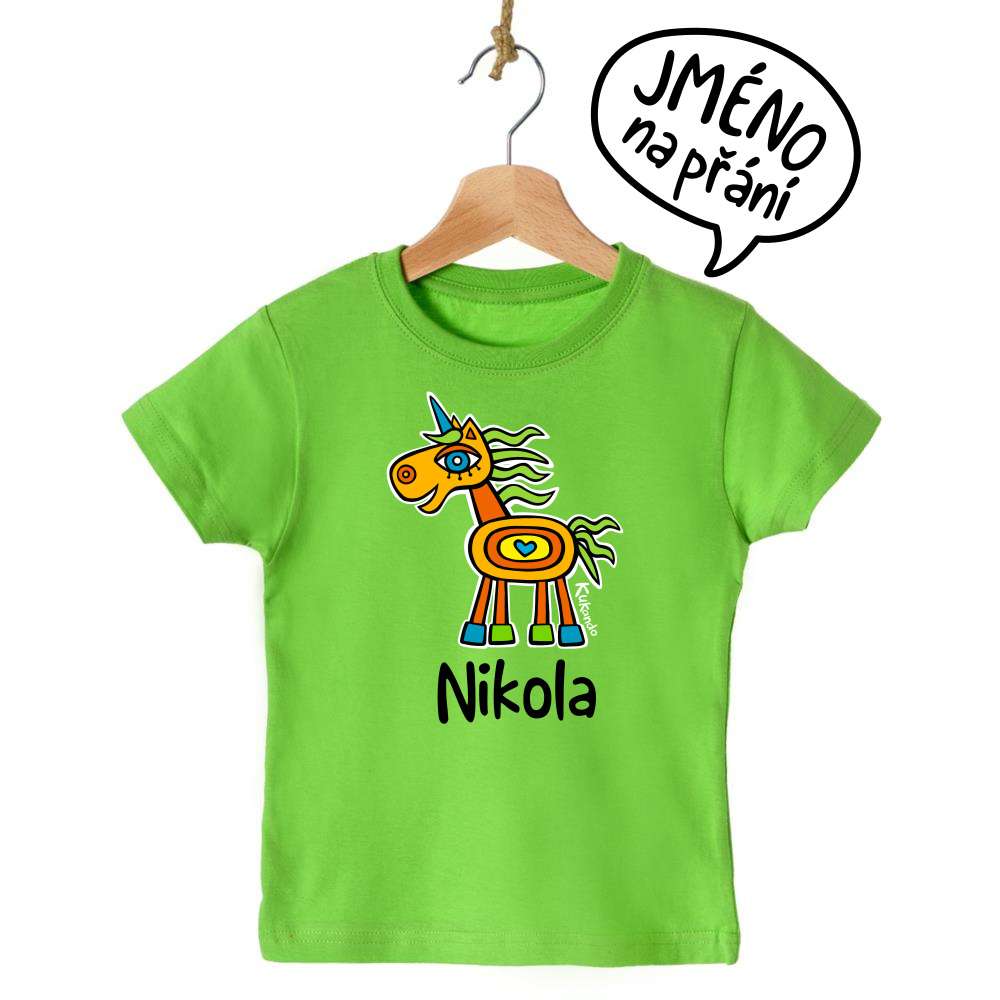Veselé dětské tričko se jménem a s motivem Kukando® jednorožce – autorského obrázku, který jinde nenajdete :-)