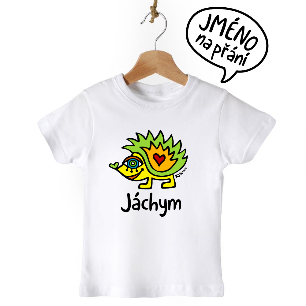 Veselé dětské tričko se jménem a s motivem Kukando® ježka – autorského obrázku, který jinde nenajdete :-)