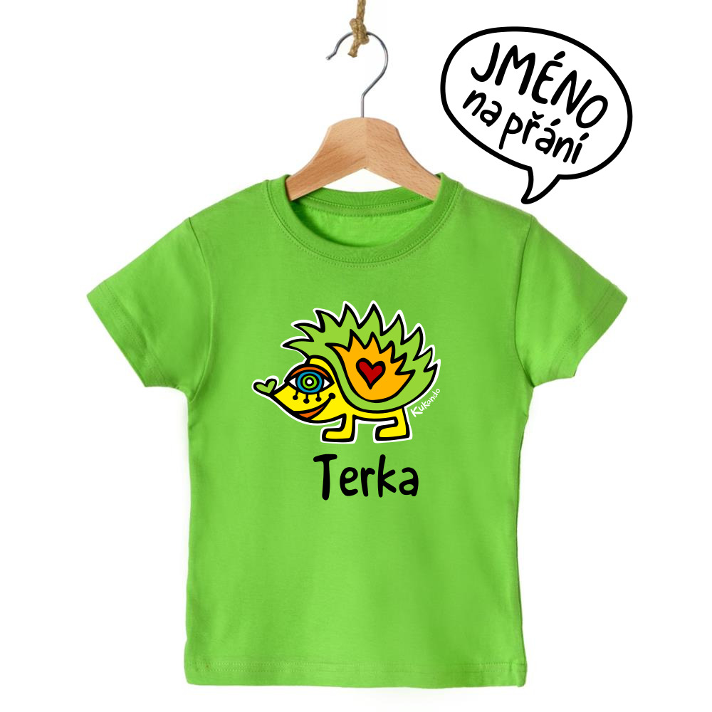 Veselé dětské tričko se jménem a s motivem Kukando® ježka – autorského obrázku, který jinde nenajdete :-)