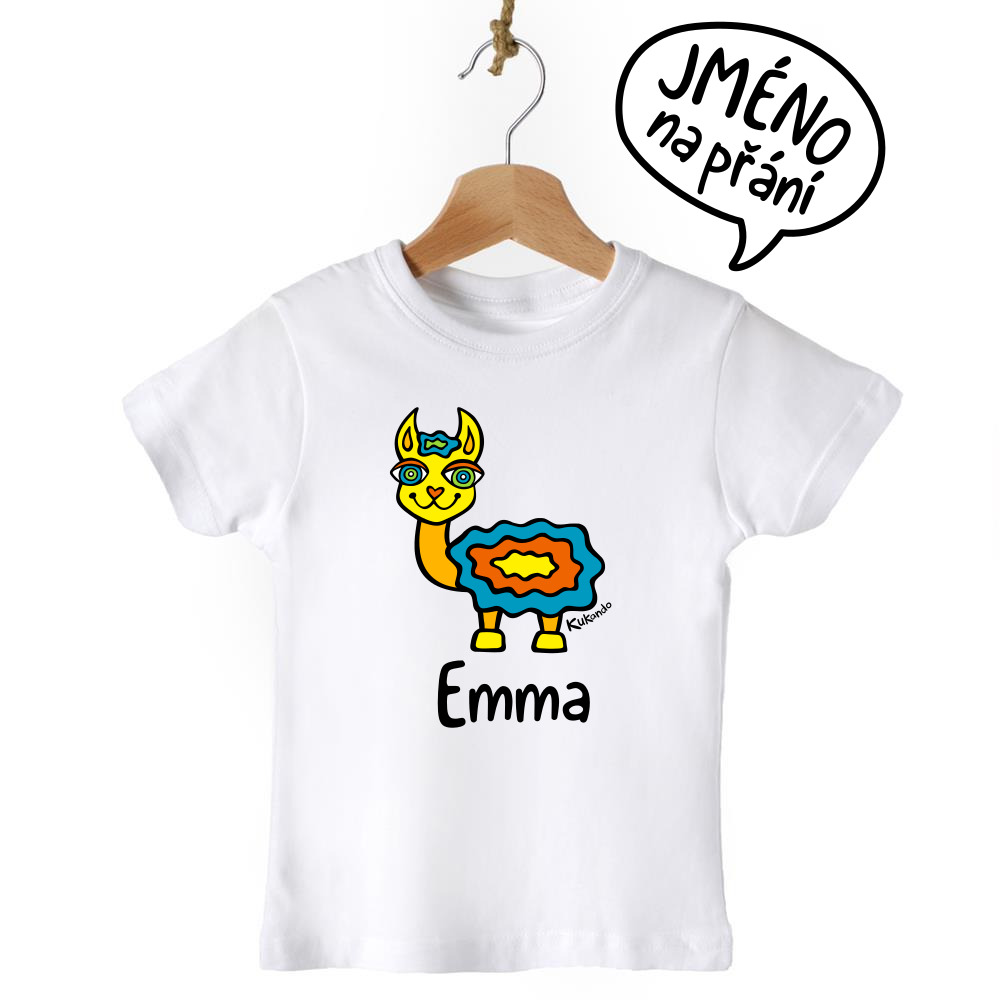 Veselé dětské tričko se jménem a s motivem Kukando® lamy – autorského obrázku, který jinde nenajdete :-)