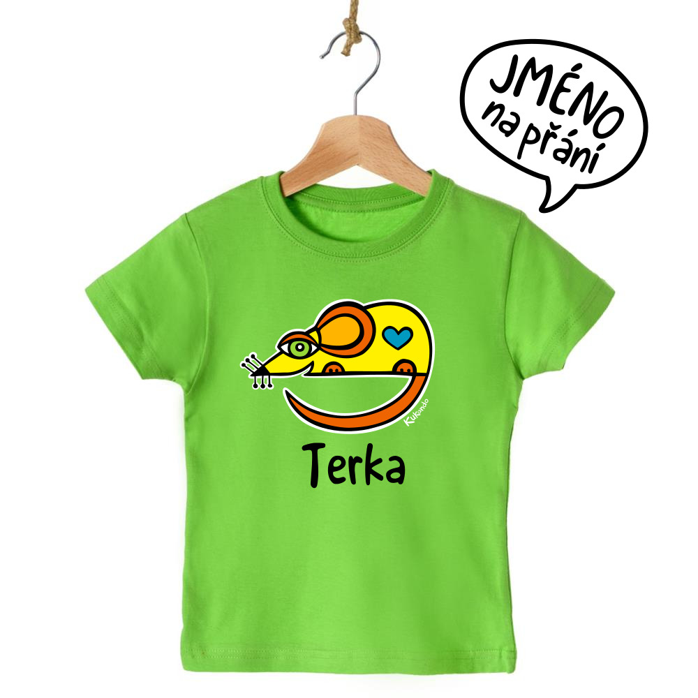 Veselé dětské tričko se jménem a s motivem Kukando® myšky – autorského obrázku, který jinde nenajdete :-)