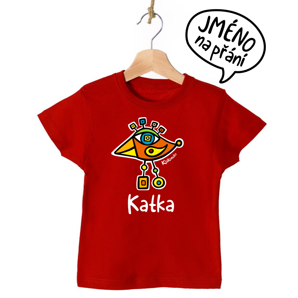 Veselé dětské tričko se jménem a s motivem Kukando® ptáčka – autorského obrázku, který jinde nenajdete :-)