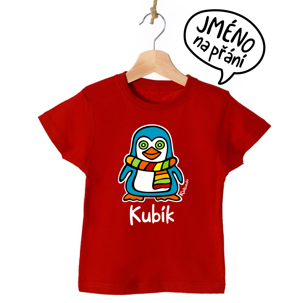 Veselé dětské tričko se jménem a s motivem Kukando® tučňáka – autorského obrázku, který jinde nenajdete :-)