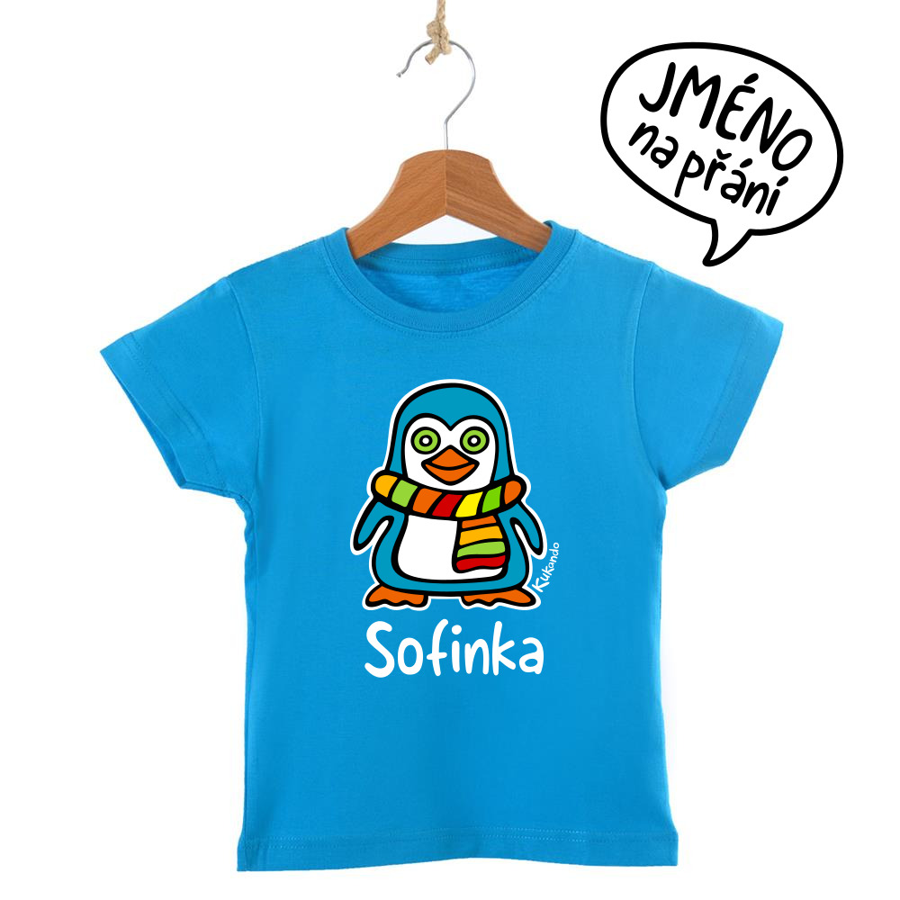 Veselé dětské tričko se jménem a s motivem Kukando® tučňáka – autorského obrázku, který jinde nenajdete :-)