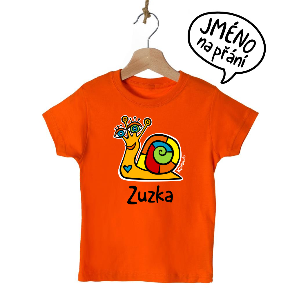 - Dětské tričko se jménem na přání ŠNEK oranžové 9-10 let