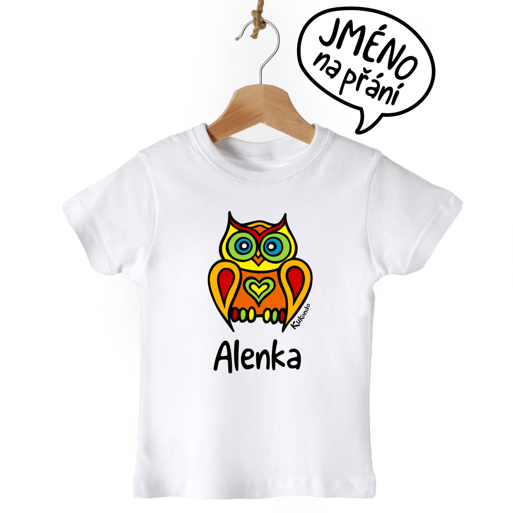 Veselé dětské tričko se jménem a s motivem Kukando® sovy – autorského obrázku, který jinde nenajdete :-)