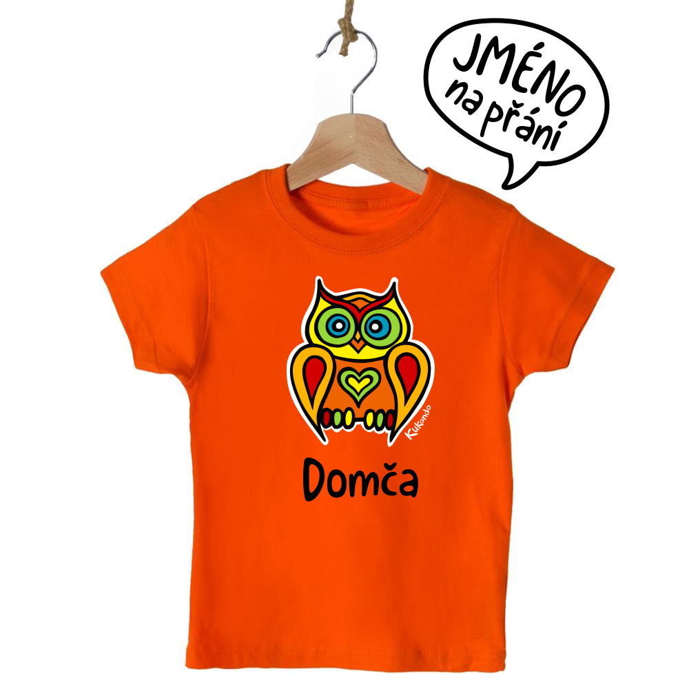 Veselé dětské tričko se jménem a s motivem Kukando® sovy – autorského obrázku, který jinde nenajdete :-)