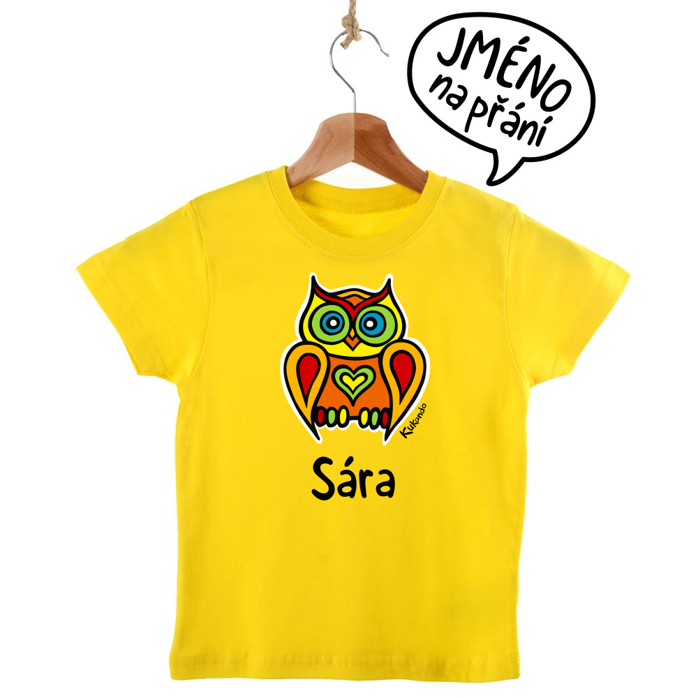 Veselé dětské tričko se jménem a s motivem Kukando® sovy – autorského obrázku, který jinde nenajdete :-)