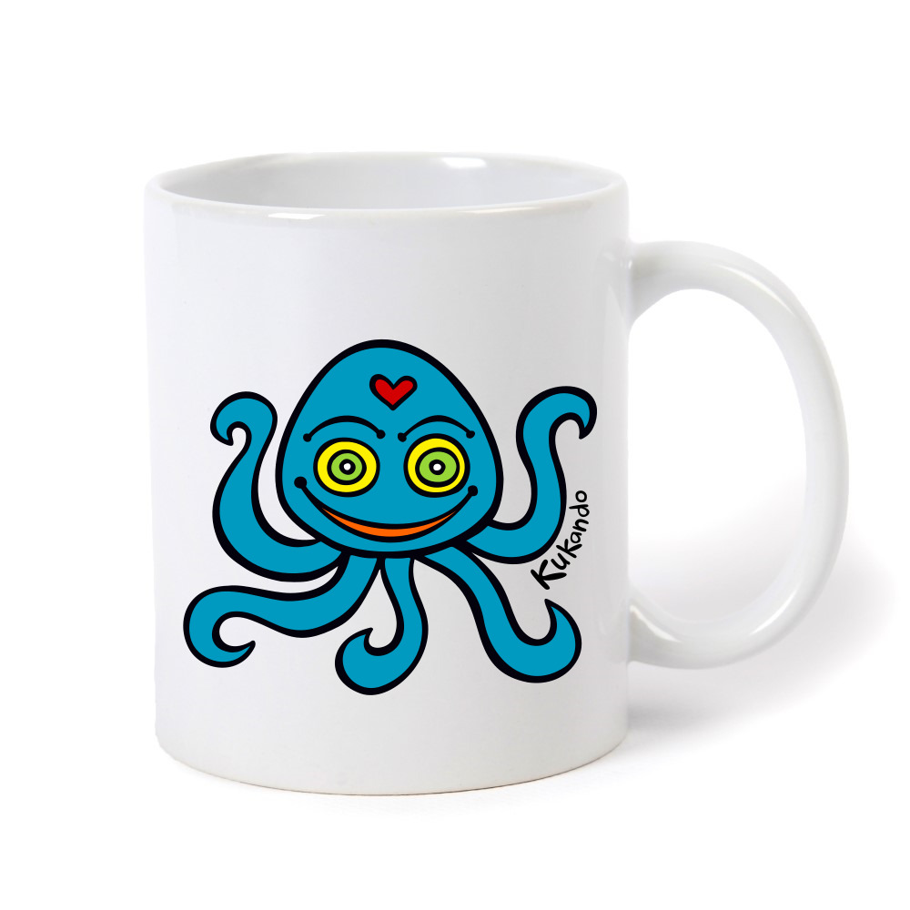 Veselý keramický hrnek s oboustranným motivem Kukando® chobotnice – autorského obrázku, který jinde nenajdete :-)