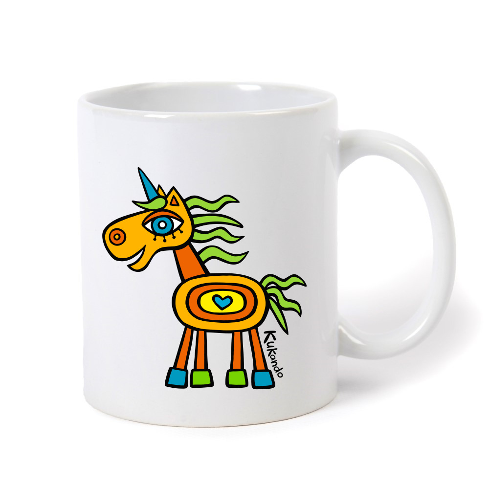Veselý keramický hrnek s oboustranným motivem Kukando® jednorožce – autorského obrázku, který jinde nenajdete :-)