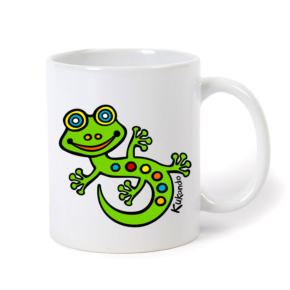 Veselý keramický hrnek s oboustranným potiskem Kukando ještěrky – autorského obrázku, který jinde nenajdete :-)