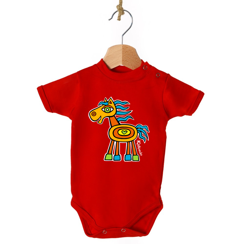 Kojenecké body KONÍK červené 9-12 měsíců