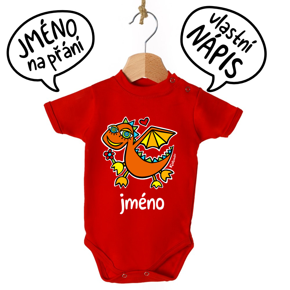 - Kojenecké body se jménem na přání DRÁČEK červené 6-9 měsíců