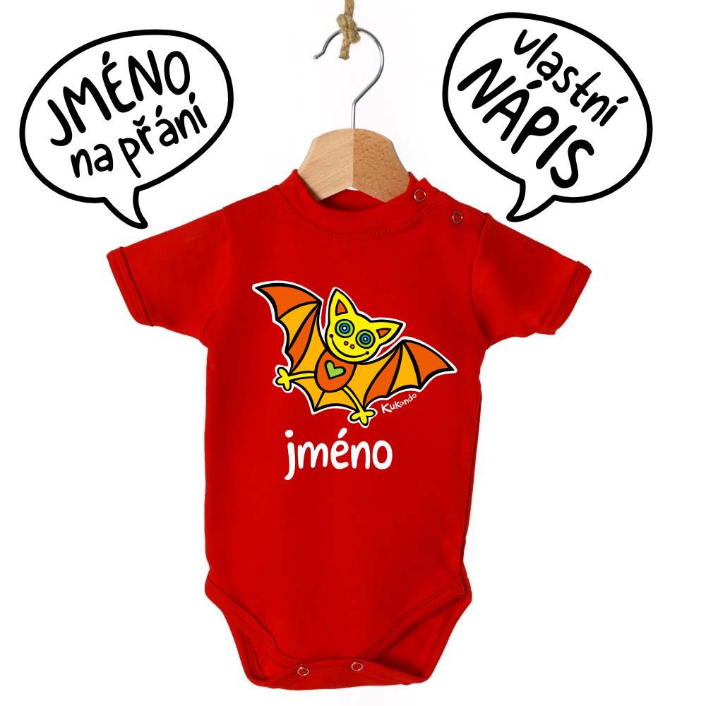 - Kojenecké body se jménem na přání NETOPÝR červené 6-9 měsíců