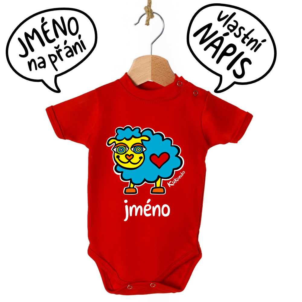 - Kojenecké body se jménem na přání OVEČKA červené 0-2 měsíce