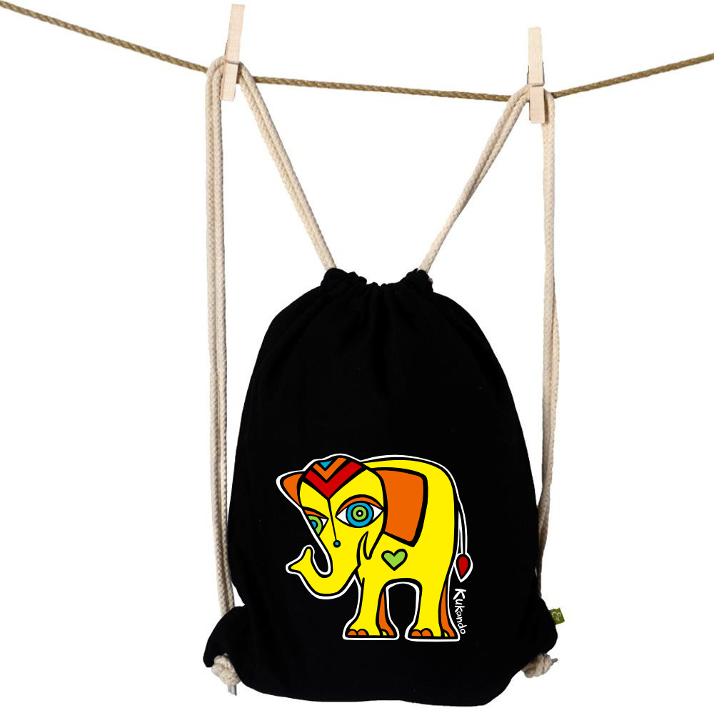 Poctivý bavlněný vak z vysokogramážové bio bavlny s motivem Kukando® slona – autorského obrázku, který jinde nenajdete :-)