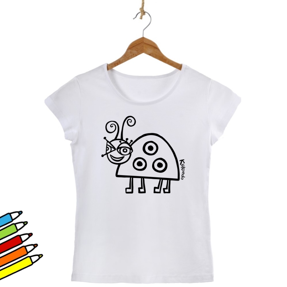 Veselé dámské tričko s motivem Kukando berušky – autorského obrázku, který jinde nenajdete :-) Popusťte uzdu své fantazii a udělejte z trička s pomocí fixů na textil skutečný originál!