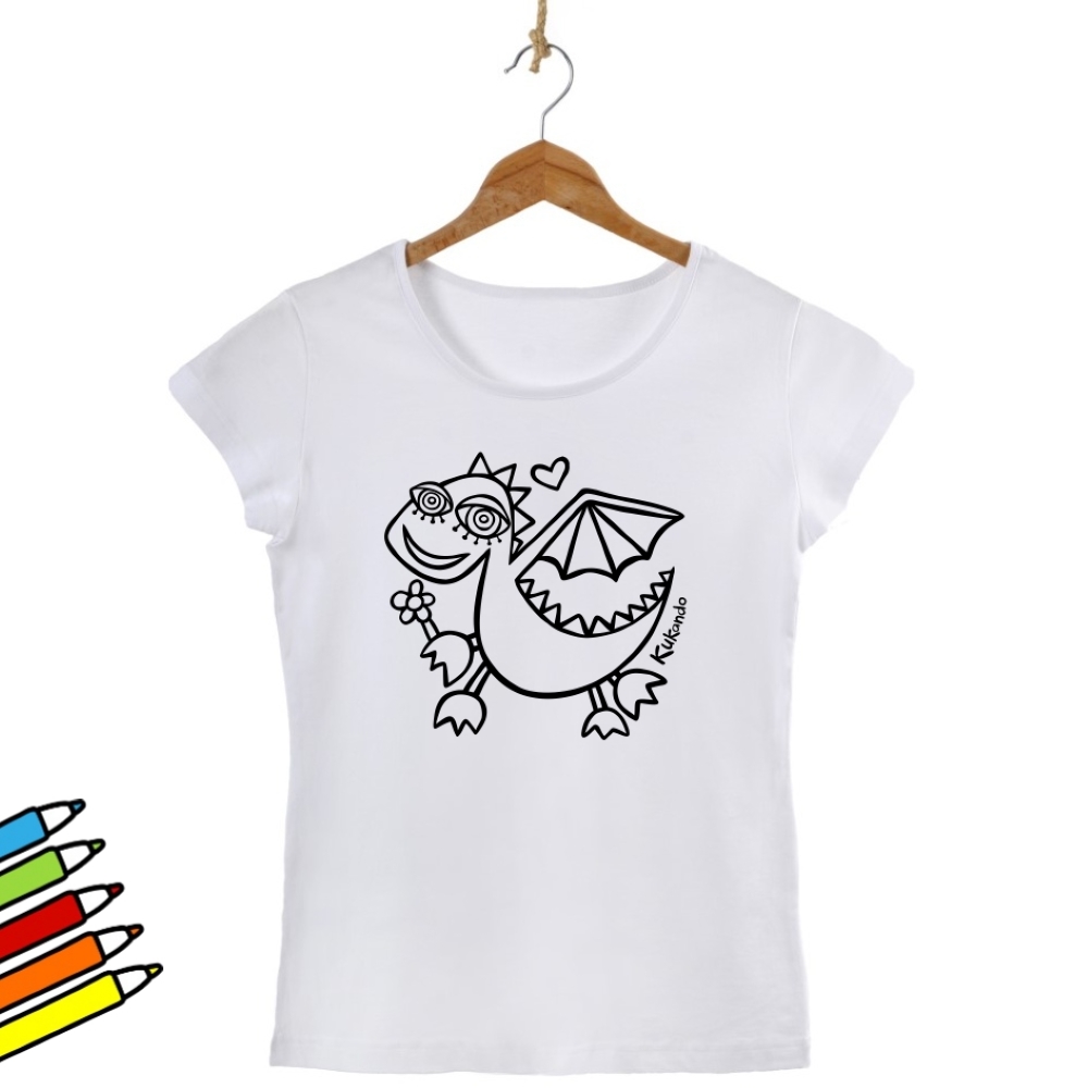 Veselé dámské tričko s motivem Kukando dráčka – autorského obrázku, který jinde nenajdete :-) Popusťte uzdu své fantazii a udělejte z trička s pomocí fixů na textil skutečný originál!