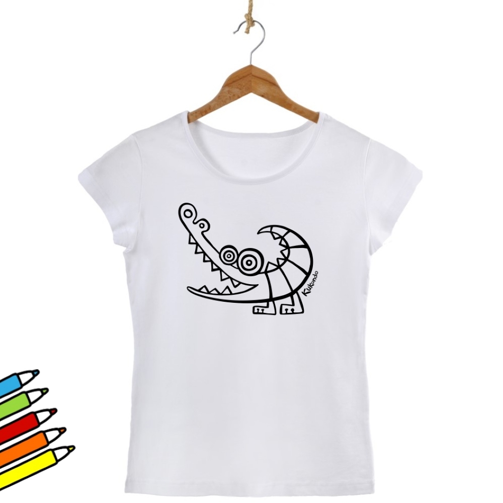 Veselé dámské tričko s motivem Kukando krokodýla – autorského obrázku, který jinde nenajdete :-) Popusťte uzdu své fantazii a udělejte z trička s pomocí fixů na textil skutečný originál!
