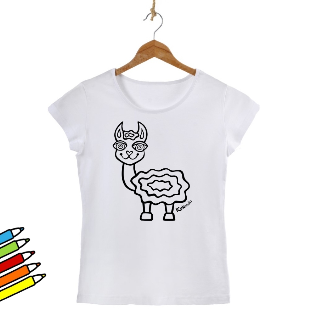 Veselé dámské tričko s motivem Kukando lamy – autorského obrázku, který jinde nenajdete :-) Popusťte uzdu své fantazii a udělejte z trička s pomocí fixů na textil skutečný originál!