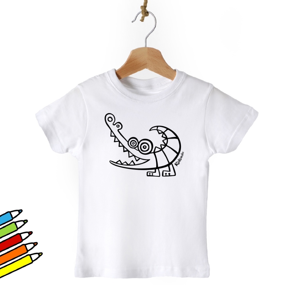 Vybarvovací dětské tričko s motivem Kukando krokodýla – autorského obrázku, který jinde nenajdete :-) Popusťte uzdu své fantazii a udělejte z trička s pomocí fixů na textil skutečný originál!