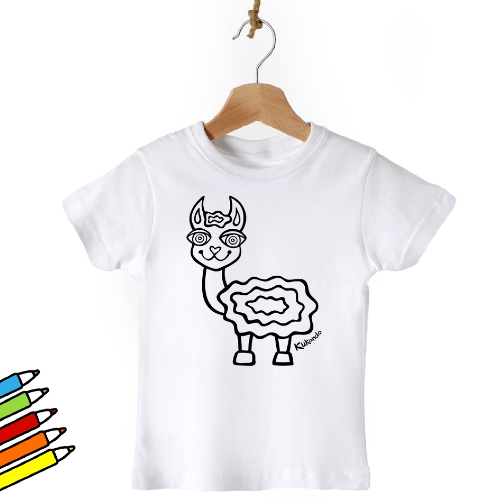 Vybarvovací dětské tričko s motivem Kukando lamy – autorského obrázku, který jinde nenajdete :-) Popusťte uzdu své fantazii a udělejte z trička s pomocí fixů na textil skutečný originál!