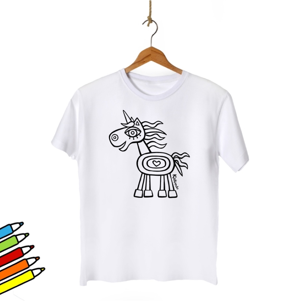 Veselé pánské tričko s motivem Kukando jednorožce – autorského obrázku, který jinde nenajdete :-) Popusťte uzdu své fantazii a udělejte z trička s pomocí fixů na textil skutečný originál!