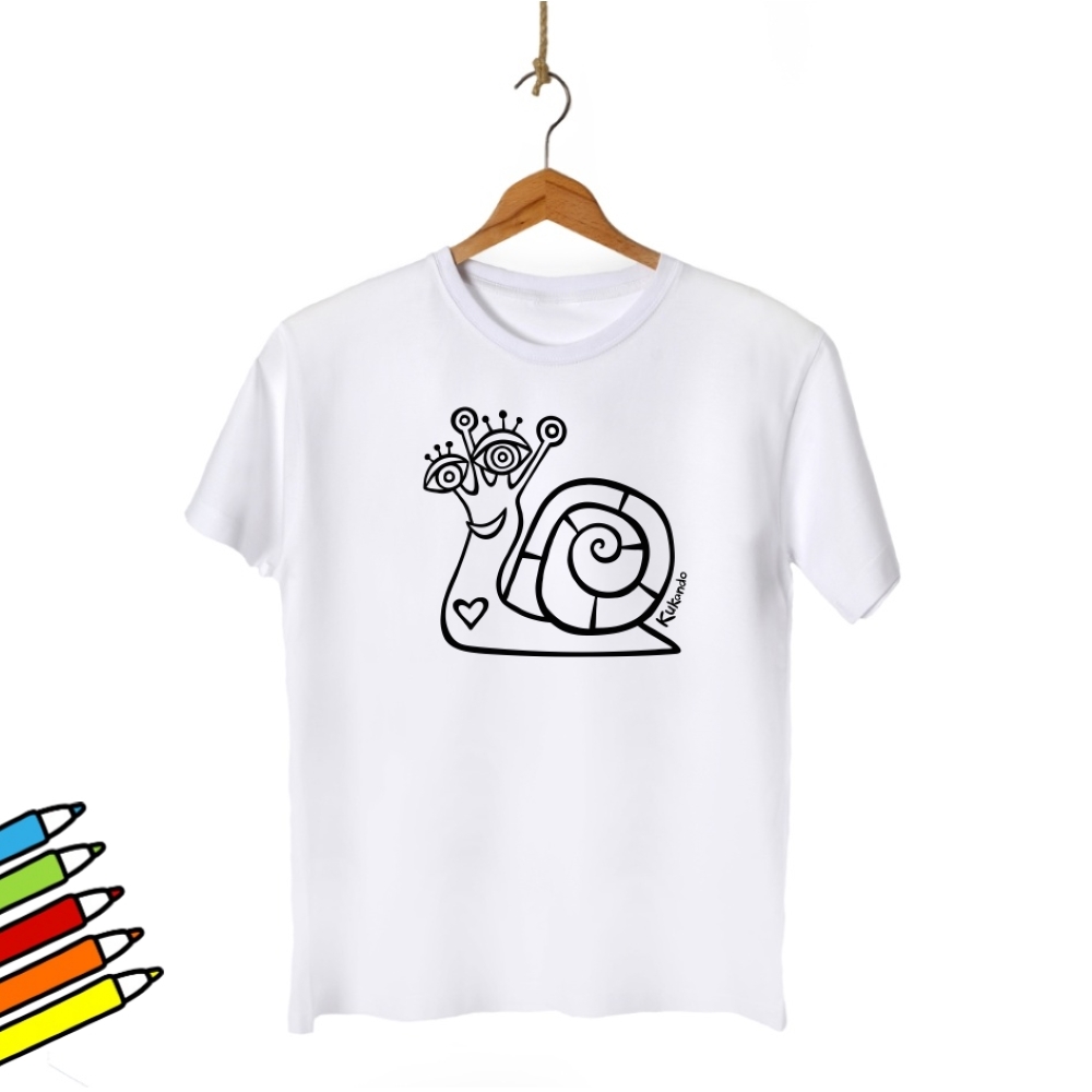Veselé pánské tričko s motivem Kukando šneka – autorského obrázku, který jinde nenajdete :-) Popusťte uzdu své fantazii a udělejte z trička s pomocí fixů na textil skutečný originál!
