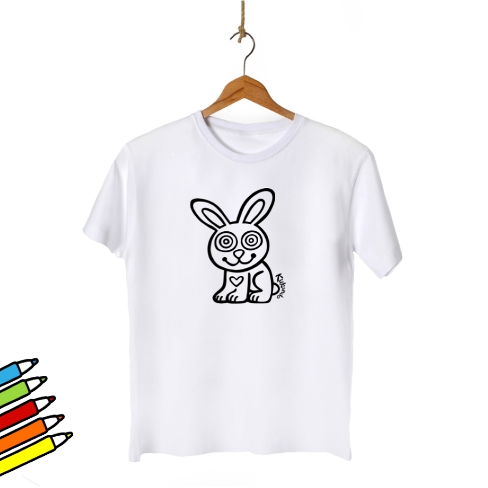 Veselé pánské tričko s motivem Kukando zajíčka – autorského obrázku, který jinde nenajdete :-) Popusťte uzdu své fantazii a udělejte z trička s pomocí fixů na textil skutečný originál!